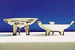 Sushi- set, 23 parts, Raku ceramic, white raku glaze, reduction in sawdust, 2000